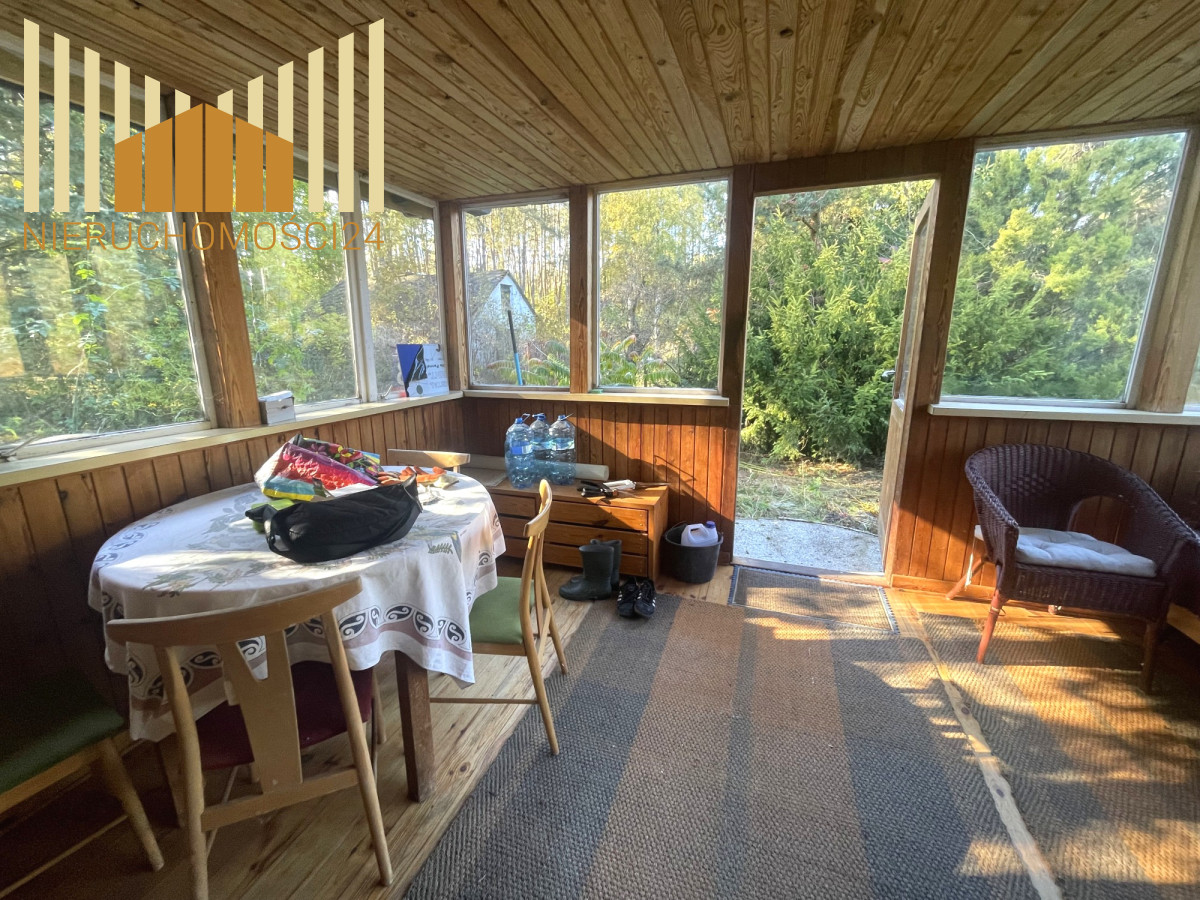 Budynek murowany , z drewnianym gankiem. W domu znajdują się 4 pokoje, kuchnia, komunikacja, łazienka oraz ganek. Okna drewniane typowe (prod. Wołomin) 2 szybowe zespolone , drzwi typowe płytowe z lat 80-tych , podłogi drewniane .