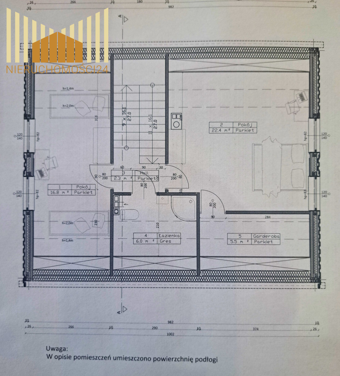Parter z mieszkalnym poddaszem , o powierzchni 135 m2, w stanie surowym, pokryty blachodachówką.