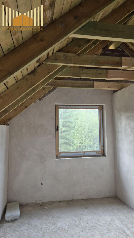 Dach z blachodachówki ,odeskowany z zamontowanymi rynnami .Okna i drzwi zewnętrzne bardzo dobrej jakości .