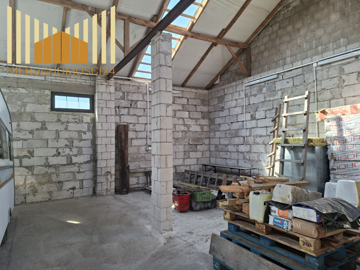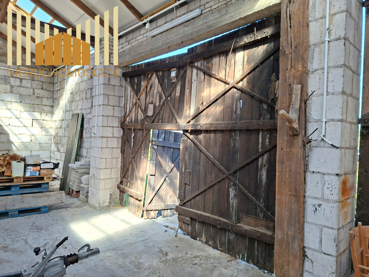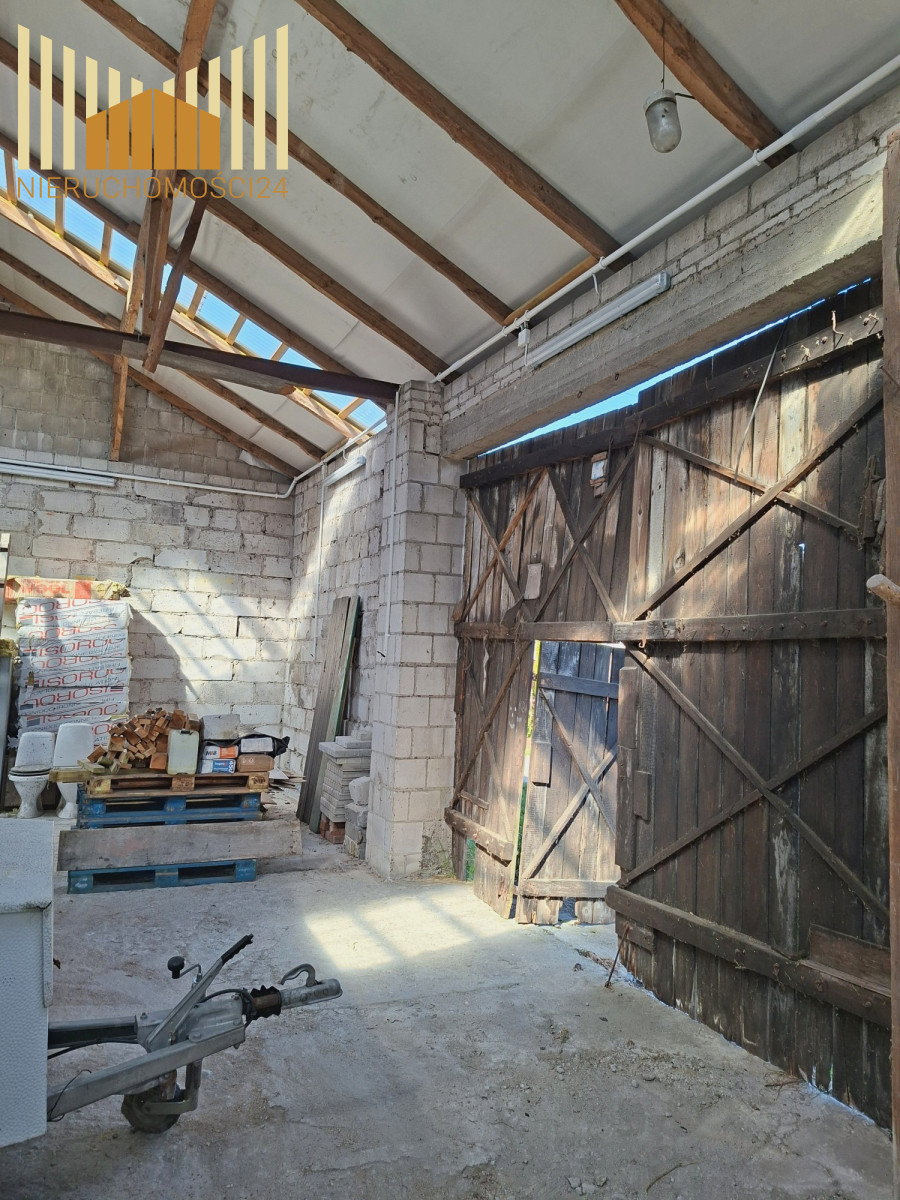 Na działce znajdują się dwa budynki gospodarcze . Jednym z nich jest 150 metrowa stodoła murowana , kryta blachą , z wylaną posadzką betonową . Pomieszczenie możliwe do zaadoptowania na magazyn lub warsztat .