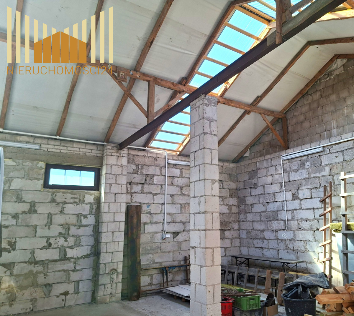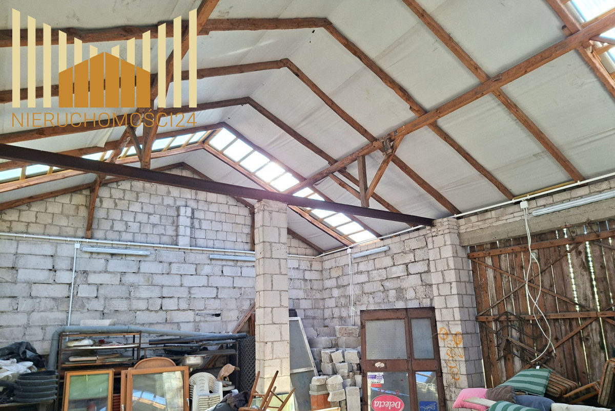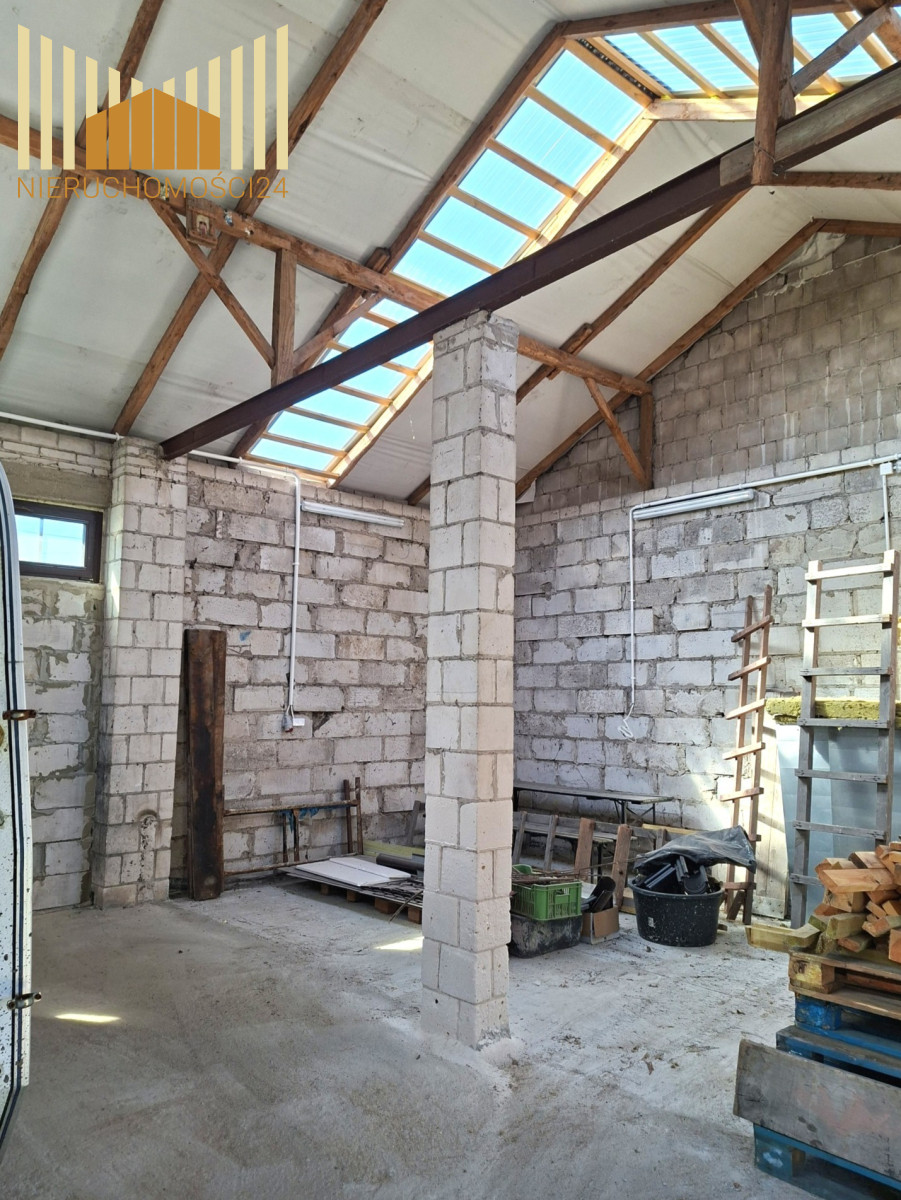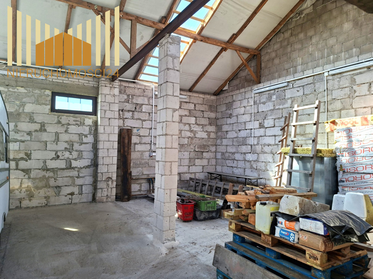 Na działce znajdują się dwa budynki gospodarcze . Jednym z nich jest 150 metrowa stodoła murowana , kryta blachą , z wylaną posadzką betonową . Pomieszczenie możliwe do zaadoptowania na magazyn lub warsztat .