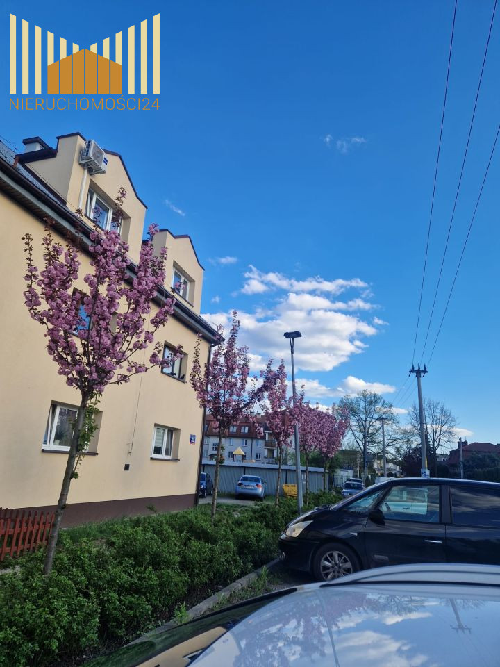 Przy budynku zadbany zielony teren i miejsca do parkowania.