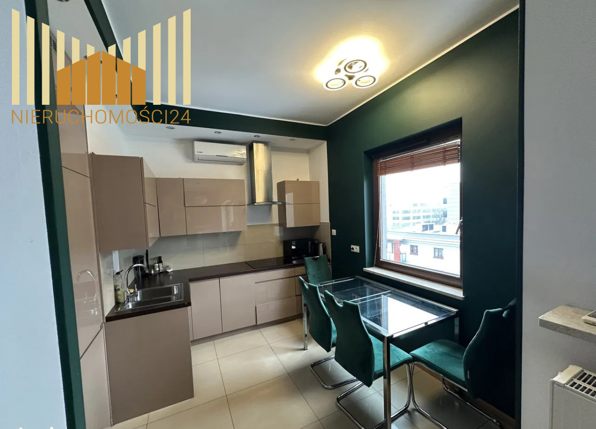 Nowoczesny, umeblowany, wysoki standard. Cztery pokoje z dwiema łazienkami. Aneks kuchenny i BALKON.