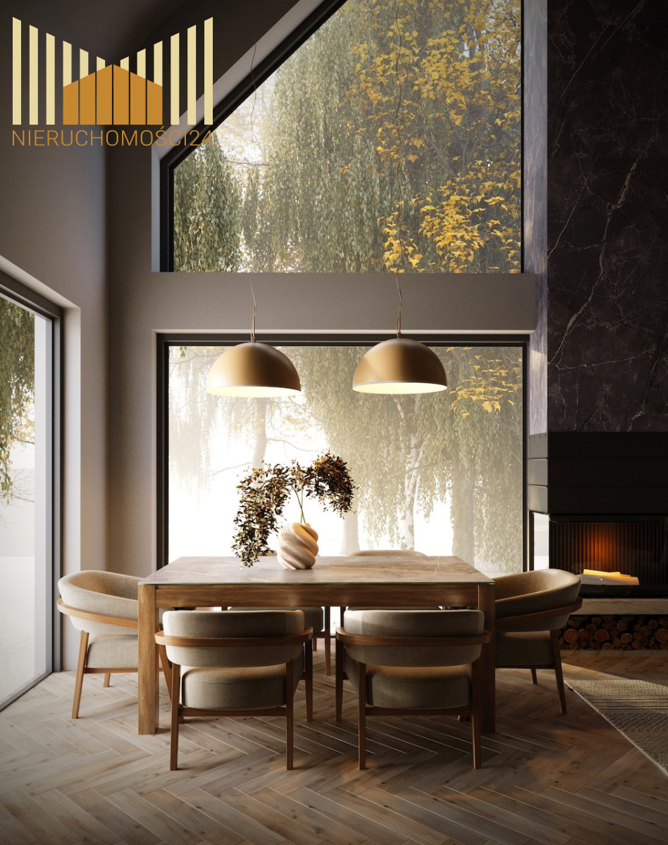 Dom został zaprojektowany z myślą o funkcjonalności i wygodzie mieszkańców.Przemyślany układ pomieszczeń pozwala na swobodną aranżację wnętrz według własnych potrzeb i gustu. Duże przeszklenia zapewniają doskonałe doświetlenie wnętrz oraz piękne widoki na otaczającą okolicę.