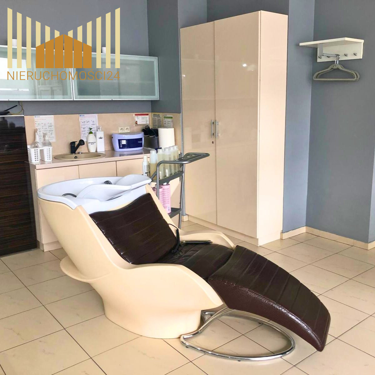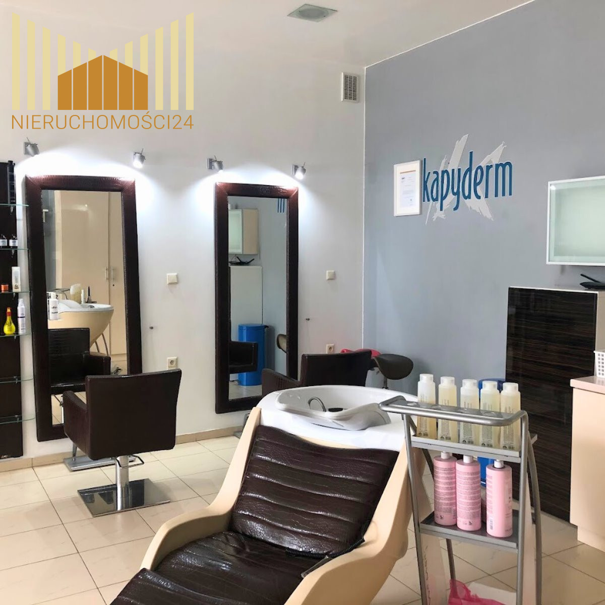 W pełni wyposażony i gotowy do wejścia - funkcjonował jako gabinet fryzjersko-trychologiczny.