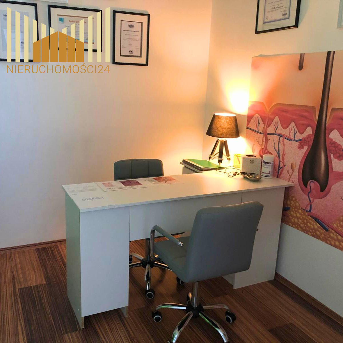 - Zamknięty gabinet zabiegowy (idealny pod trychologię, kosmetologię, masaż itp.),